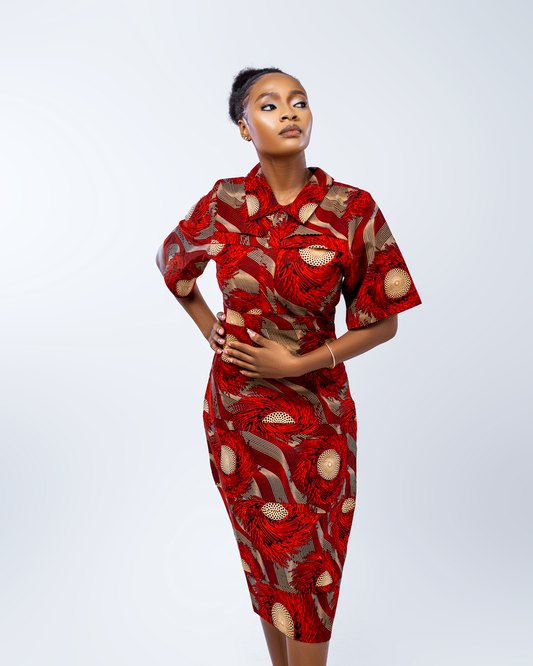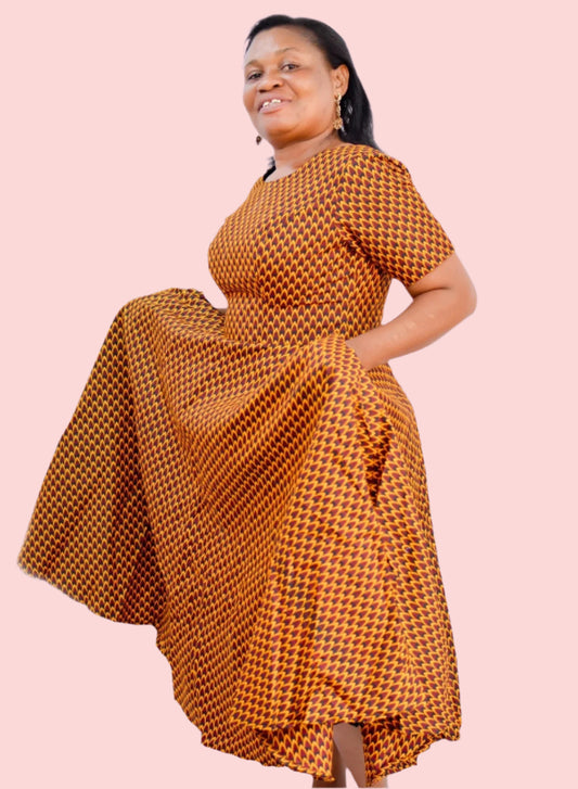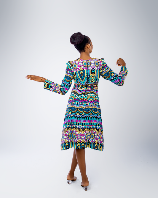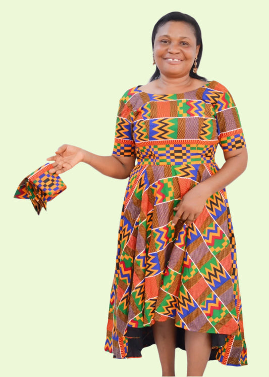 Amazing Kente Print Hi-Lo Fit & Flare Dress & Scarf