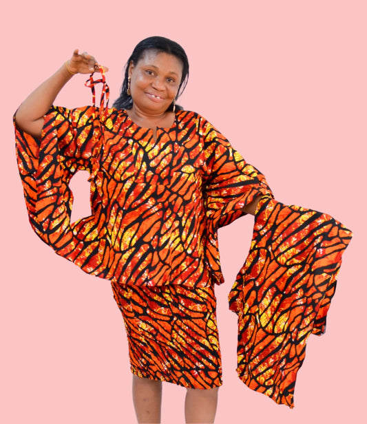 Nefertiti Batwing Top Pencil Skirt & Scarf