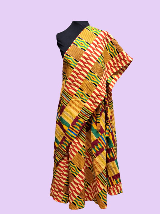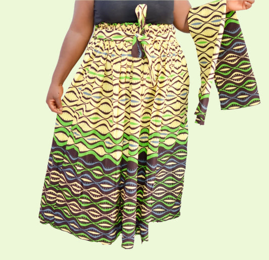Ava Kente Print Shirred Waist Maxi Skirt & Scarf