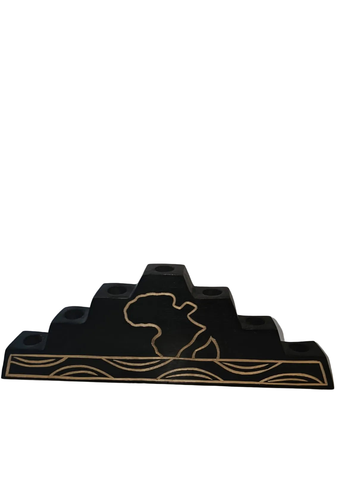 Featuring the map of Africa boldly displayed on the front and back, this kinara is a reminder of origin, connection, and collective identity — no matter where in the world you stand. Designed to hold the seven Kwanzaa candles, it represents the Nguzo Saba, guiding reflection on unity, purpose, creativity, and responsibility.